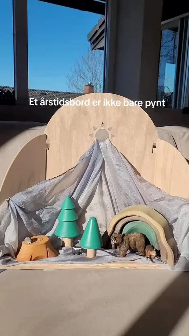 For meg henger lek tett sammen med rytme, årstider og natur. Jeg ønsket et hjem der disse fikk være en naturlig del av hverdagen, og der små verdener kan ta form – både i lek og på årstidsbord.