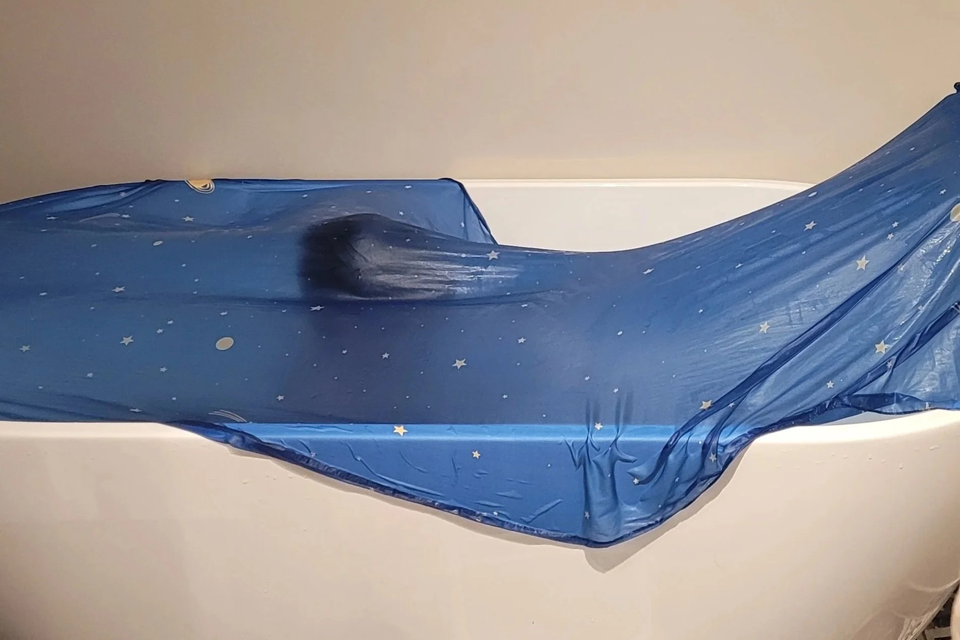 Vi bruker også lekesilke mye i badekaret. Der får stoffet helt nye kvaliteter – det flyter, synker, kleber seg til kroppen og endrer uttrykk.
